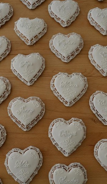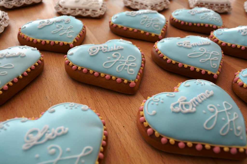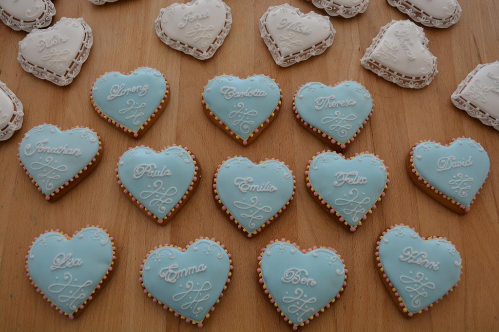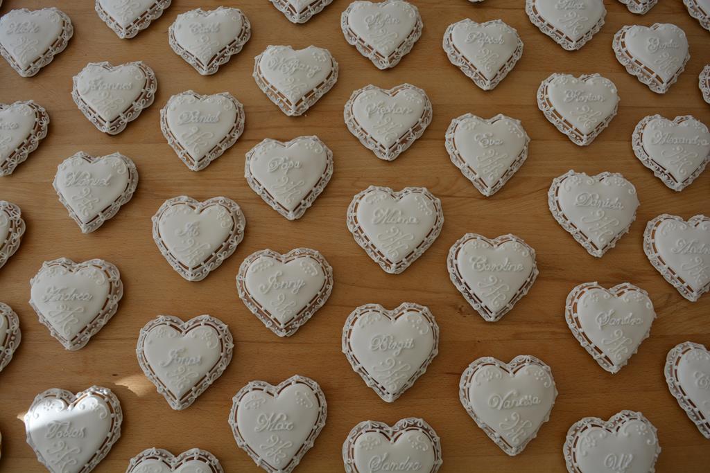 Die KunstKeks Tischkärtchen mit den Namen Ihrer Gäste verleihen der Hochzeitstafel ein romantisches Flair. Des weiteren können Ihre Gäste die handgefertigten Platzkärtchen als bleibende Erinnerung an das Fest mit nach Hause nehmen.