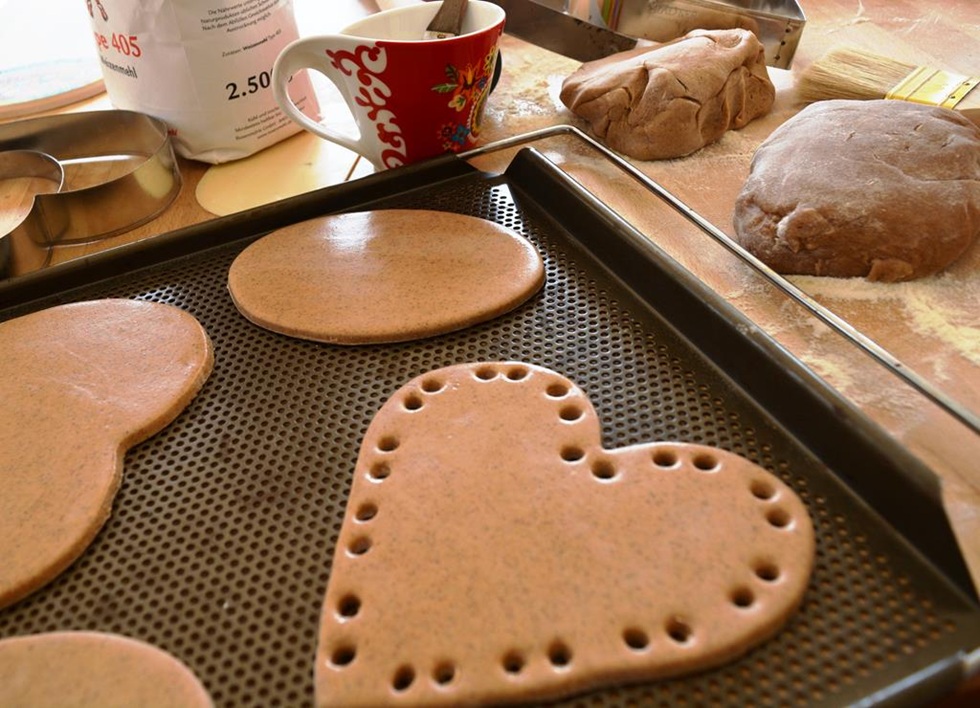 Nun können die Lebkuchengrundlagen kunstvoll verziert werden.